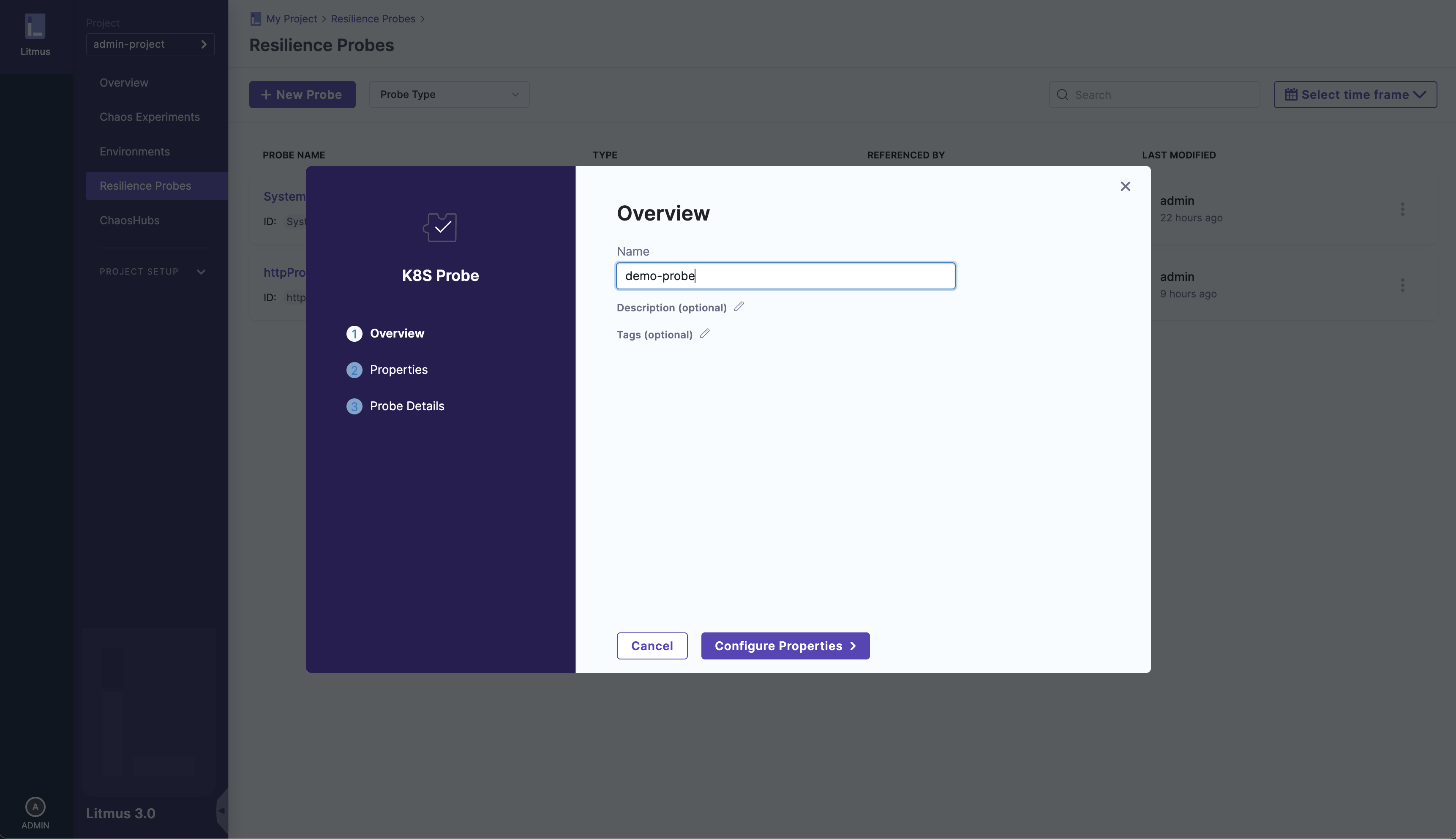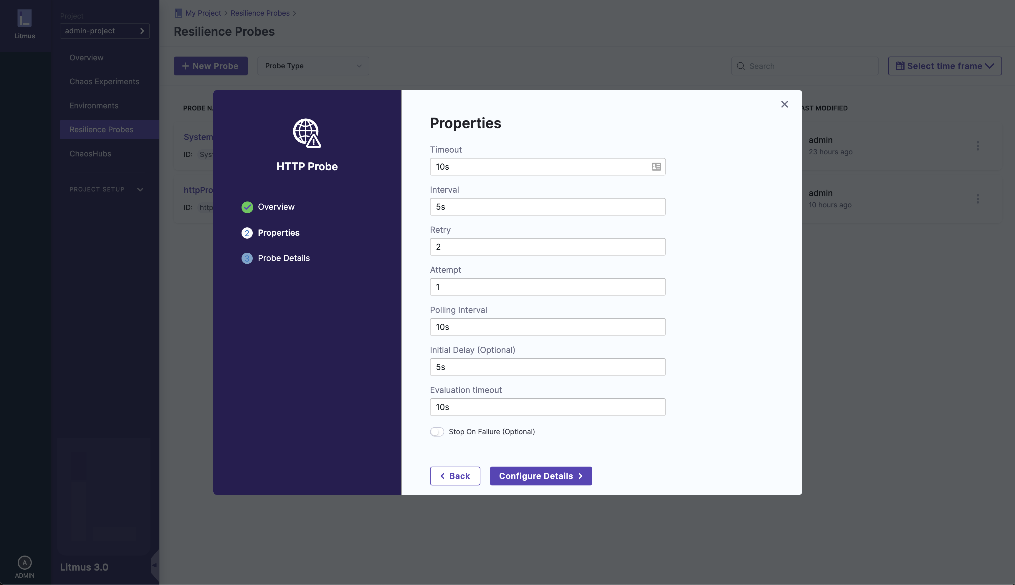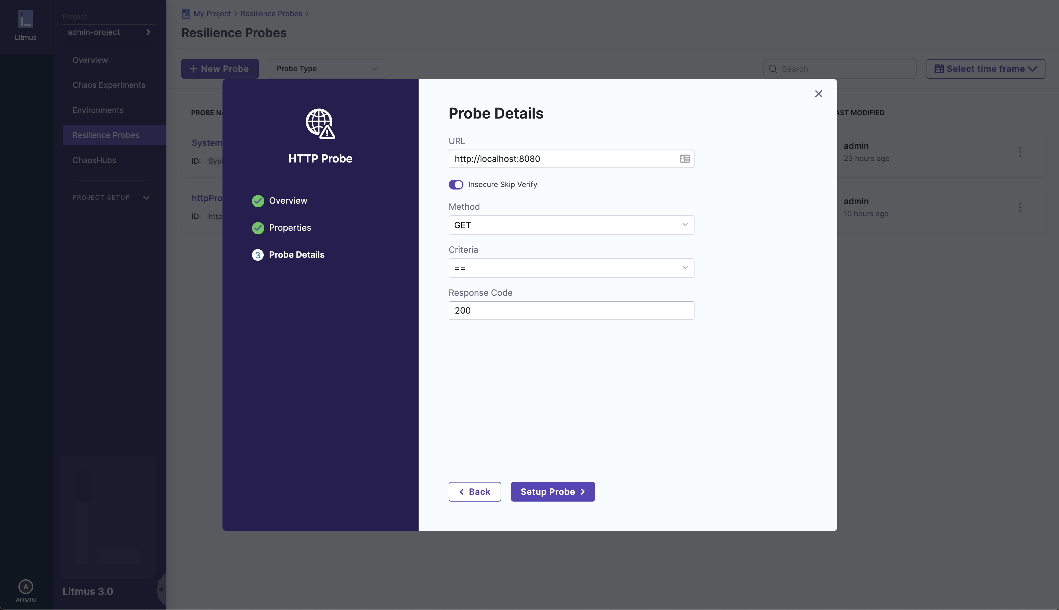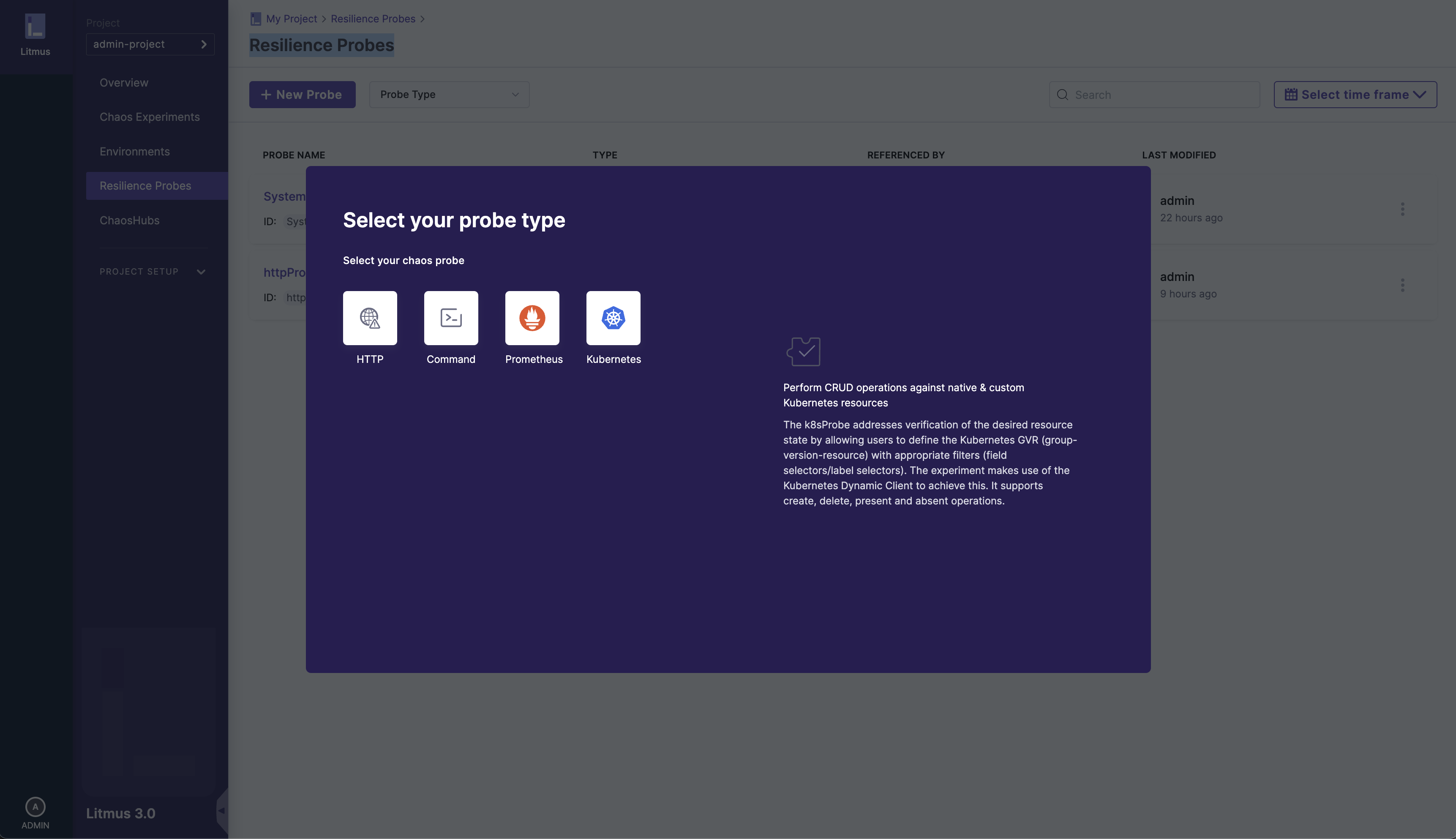 You can learn about the concept of resilience probes here and chaos experiments here. For this user guide, we will use a HTTP probe.